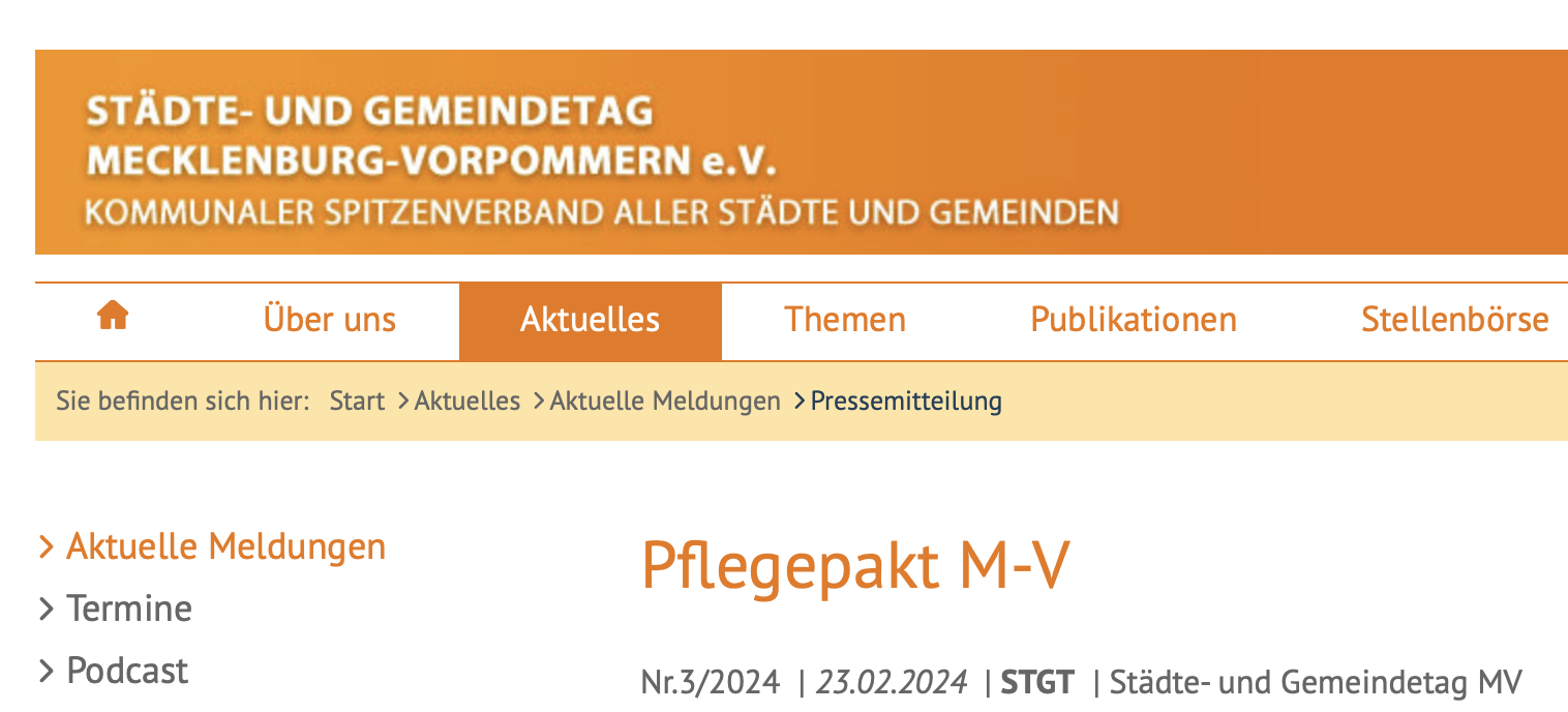 Verweigerungshaltung gefährdet pflegerische Versorgung in M-V Streichungsforderung im Pakt für